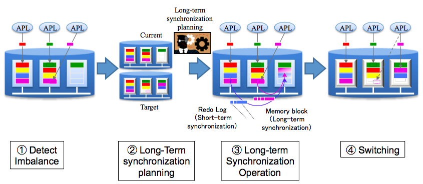 When a new node is added, it enters the cluster as a catch up node for a certain partition. ADDA transfers data to it and it is promoted to backup node. Should the primary node holding that partition fail, it will be promoted again to the master node for a partition. With this mechanism, all the nodes in the cluster will have the same load allowing GridDB to be highly scalable.