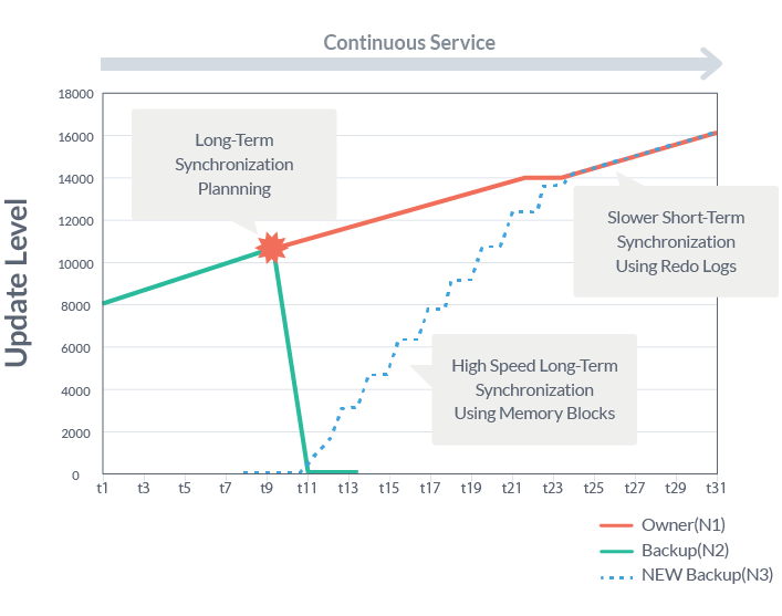 When a node fails, the cluster’s Master detects the failure and promotes all of the backup partitions to become partition owners. At this point, ADDA kicks in and instructs nodes to make replicas of partitions to ensure that the configured number of replicas are being stored.
