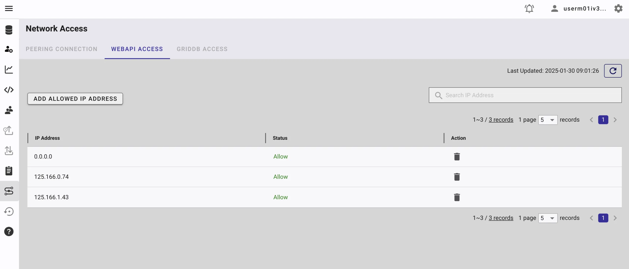 To whitelist the IP, go to the GridDB Cloud Admin and navigate to the Network Access menu.