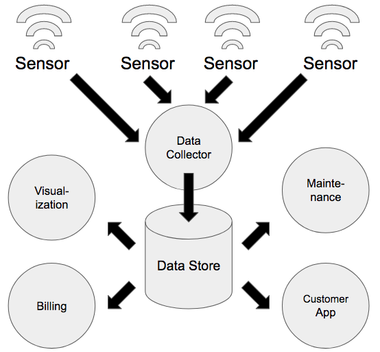 The centralized infrastructure can be hosted either on a public cloud or private on-premises servers. The devices usually communicate with a separate data collector and not directly with a database but there are certain instances where it is not required.