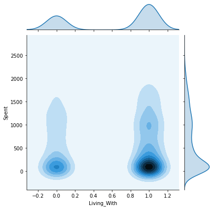 sns.jointplot(x=data[col], y=data["Spent"], hue=h, kind="kde")