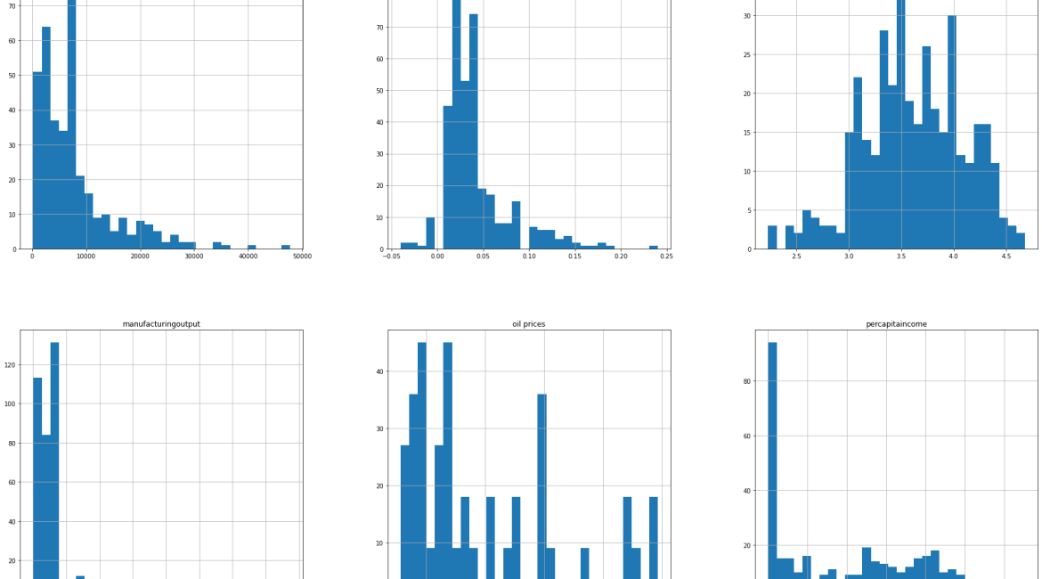 | stock index | country | year | index price | log_indexprice | inflationrate | oil prices | exchange_rate | gdppercent | percapitaincome | unemploymentrate | manufacturingoutput | tradebalance | USTreasury | |