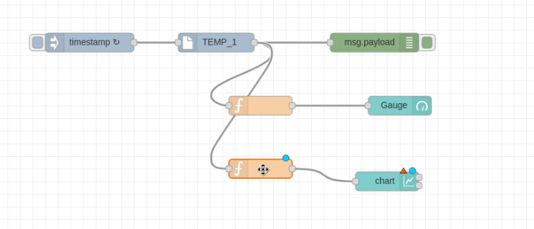 The second set of connected nodes reads from GridDB and display the values using Dashboard Nodes.