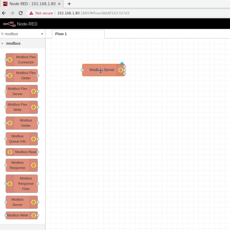 Now, you can visit the Node-Red web page at http://your_pi_ip:1880/. We’re going to add the Modbus server so the mduino application will start properly.