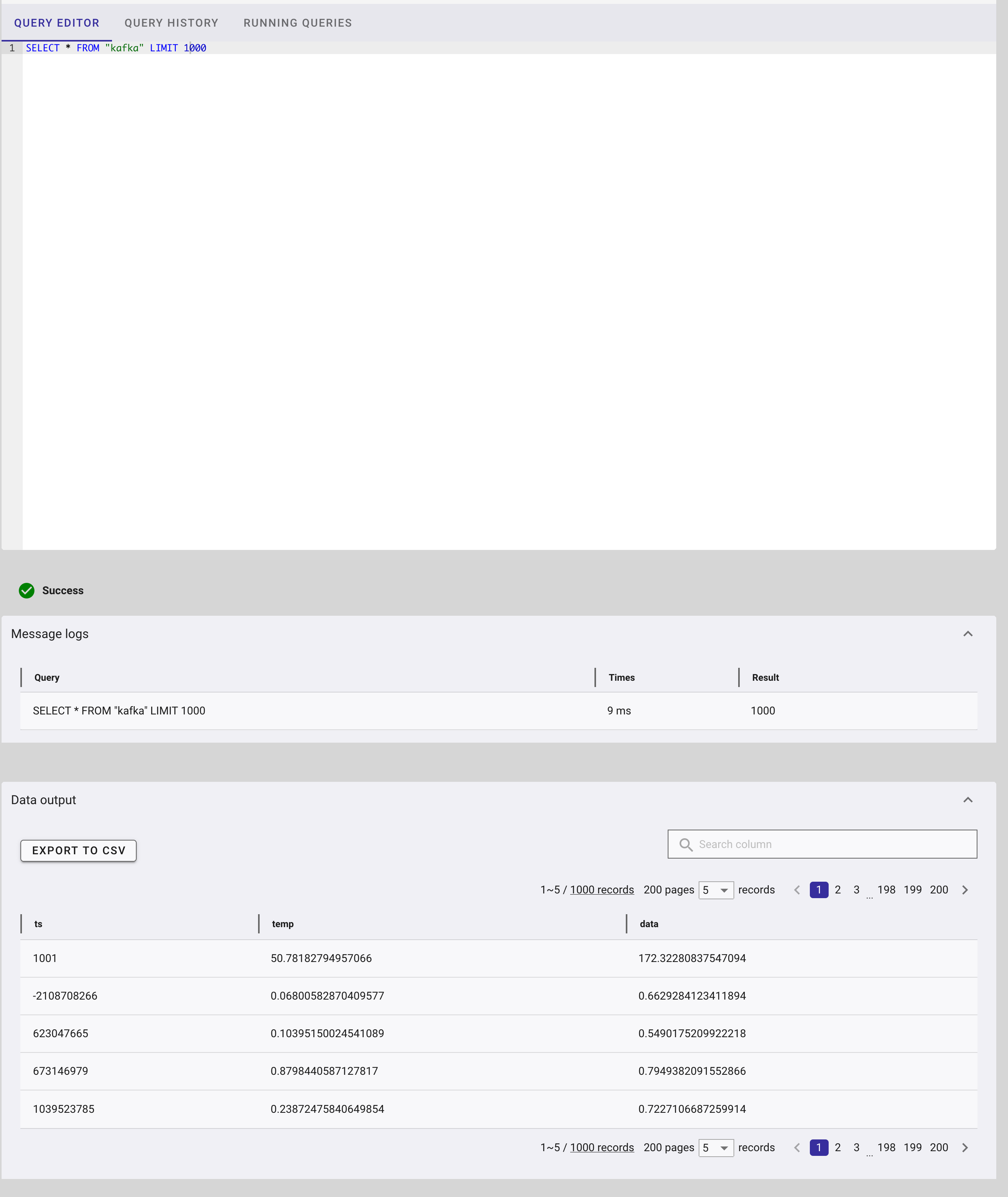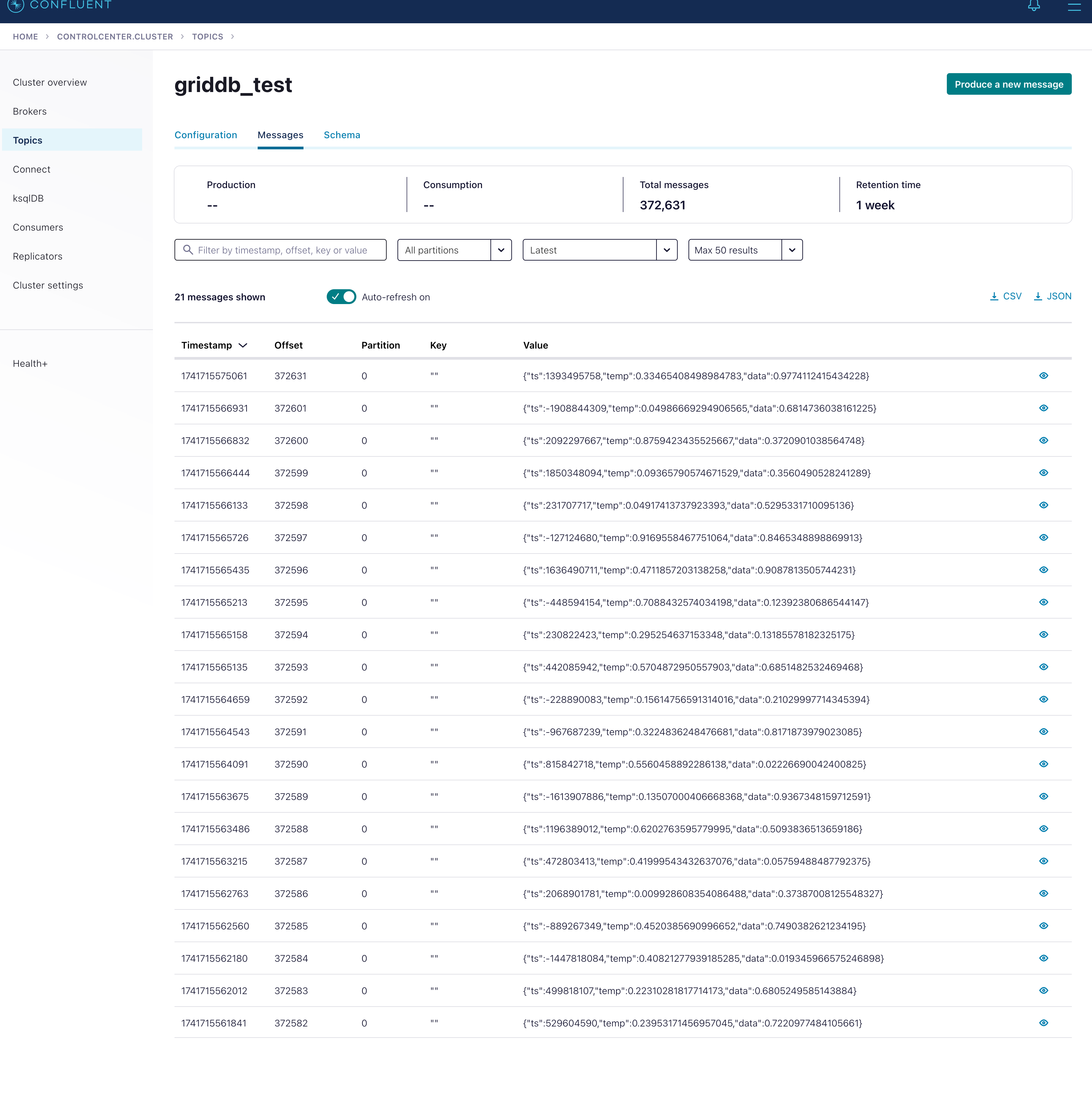 And with that, we have successfully pushed data from Kafka over to GridDB Cloud. For some next steps, you could try chaining SMTs to convert the mock data TS into timestamps that GridDB can understand and push to a time series container.