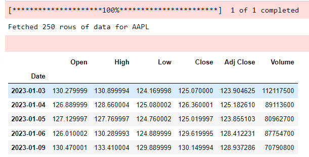 print(f"Fetched {len(data)} rows of data for {ticker}")