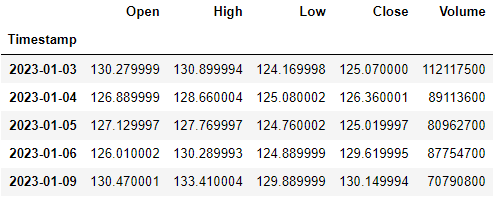 In the script below we retrieve Apple’s stock prices for the full year of 2023: