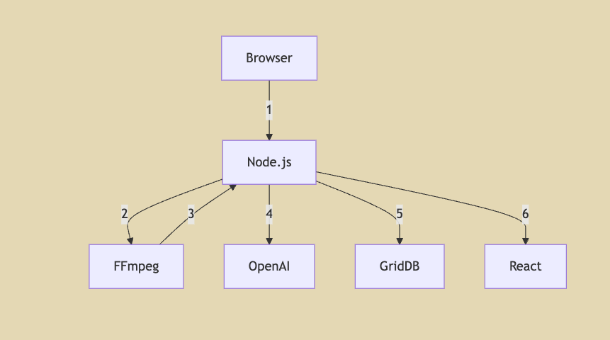 5. Metadata Storage: Node.js stores the video metadata and AI-generated content in GridDB.