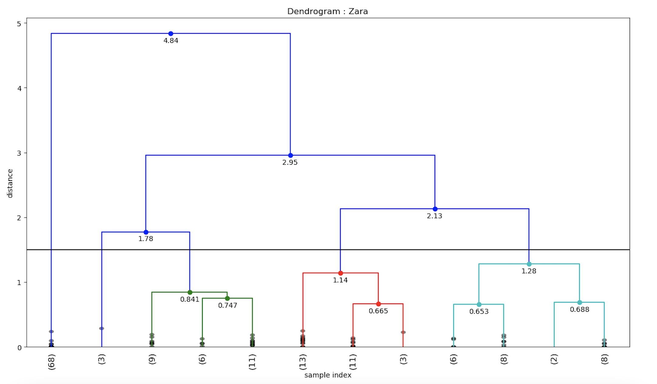 Similarly, the dendrogram for Zara brand sentiment values can be calculated.