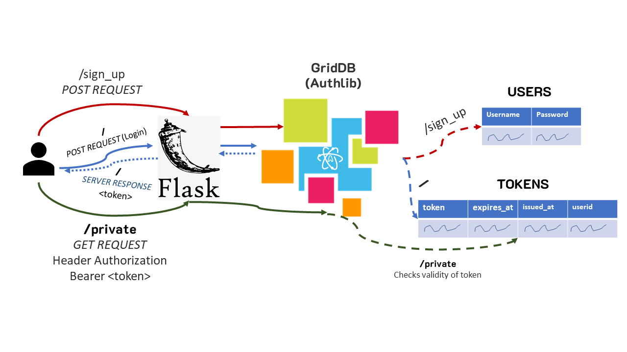 When creating a backend API server, oftentimes Authlib will be in use to help secure the application. If GridDB is already being used to store the application’s data, it can make sense to pool resources and use the same database to handle authentication as well. Following along with this blog, you can now do so.