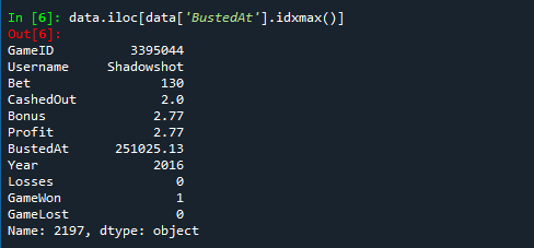 data.iloc[data['BustedAt'].idxmax()]