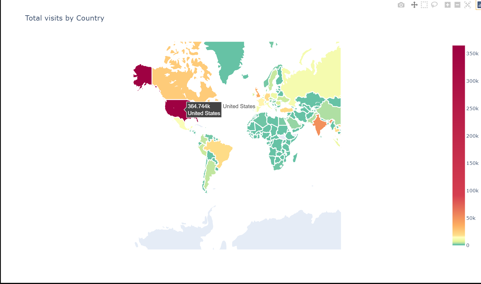 # Plot world map - total visits