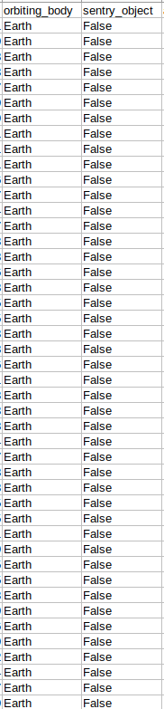 orbiting_bodyとsentry_objectは列全体で冗長な値を持ち、解析に役立つ固有の値がないため、以下のようにこの2列を解析から省くことにします。
